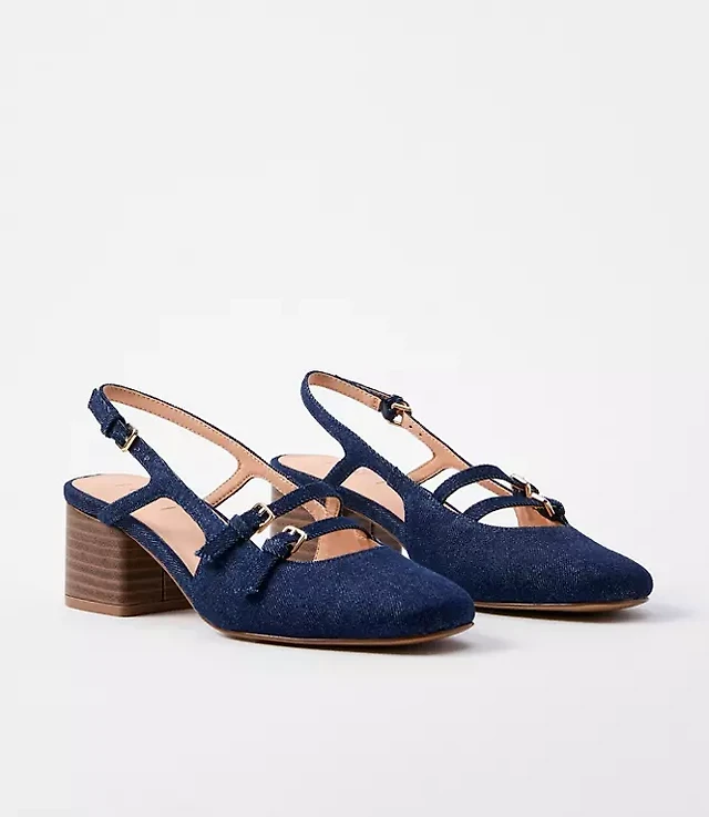 Denim Mary Jane Slingback Heels