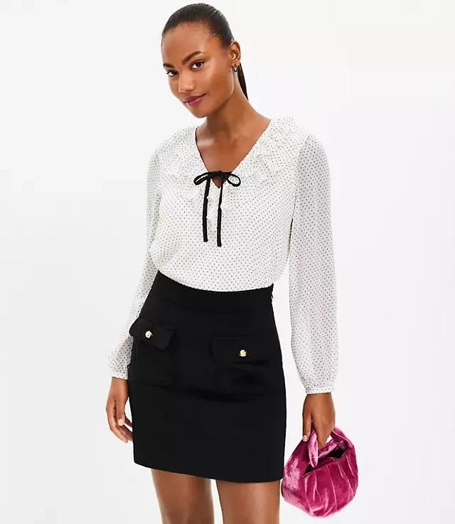 Petite Pleated Tie Neck Top