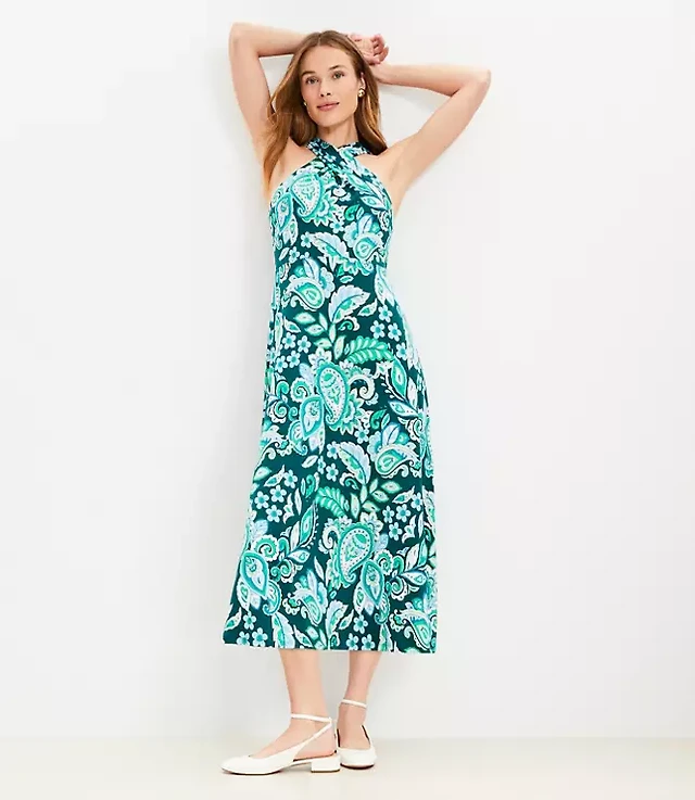Paisley Keyhole Halter Midi Dress