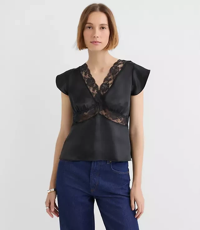 Petite Scalloped Pointelle Flare Sleeve Sweater