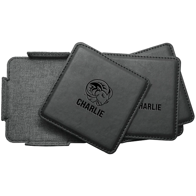 XULA Gold 4-Pack Personalized Leather Coaster Set