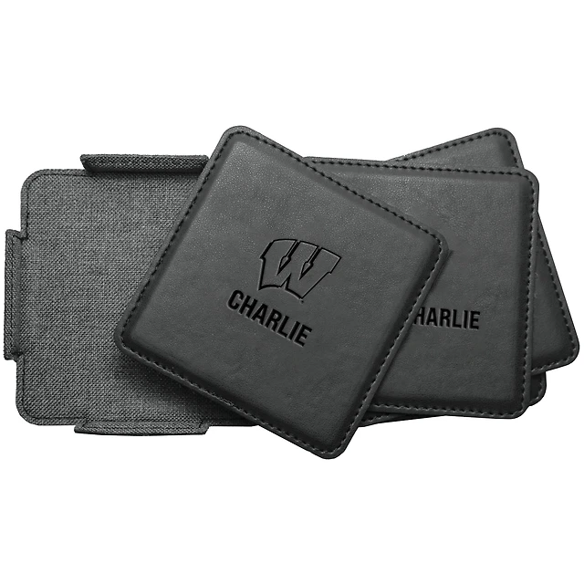 Wisconsin Badgers 4-Pack Personalized Leather Coaster Set