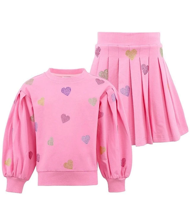 Lola + The Boys Little/Big Girls Sparkle Hearts Long Bubble Sleeve Sweatshirt & Pleated Skirt Set