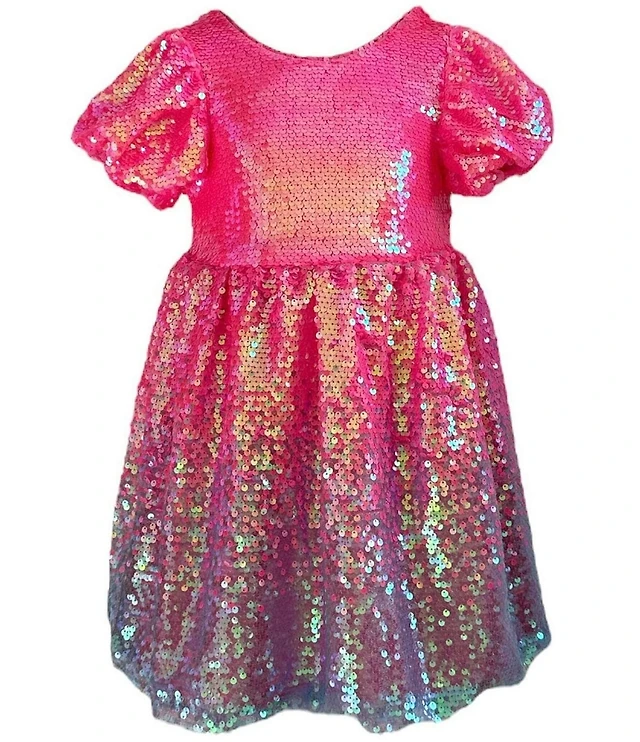 Lola + The Boys Little/Big Girls Ombre Sequin Shimmer Puff Sleeve Dress