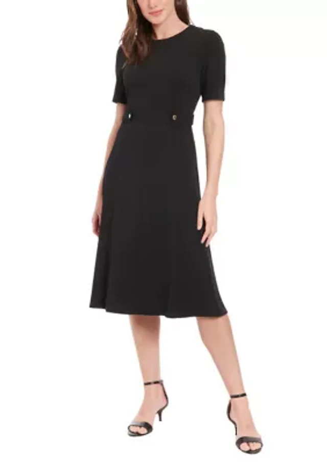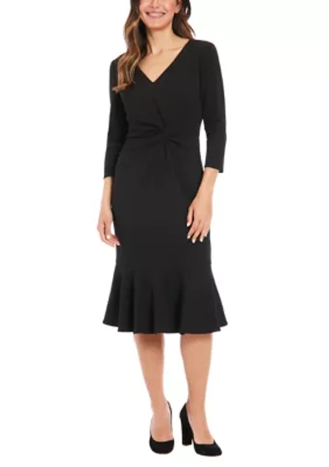 Women's 3/4 Sleeve Waist Tab Midi Dress