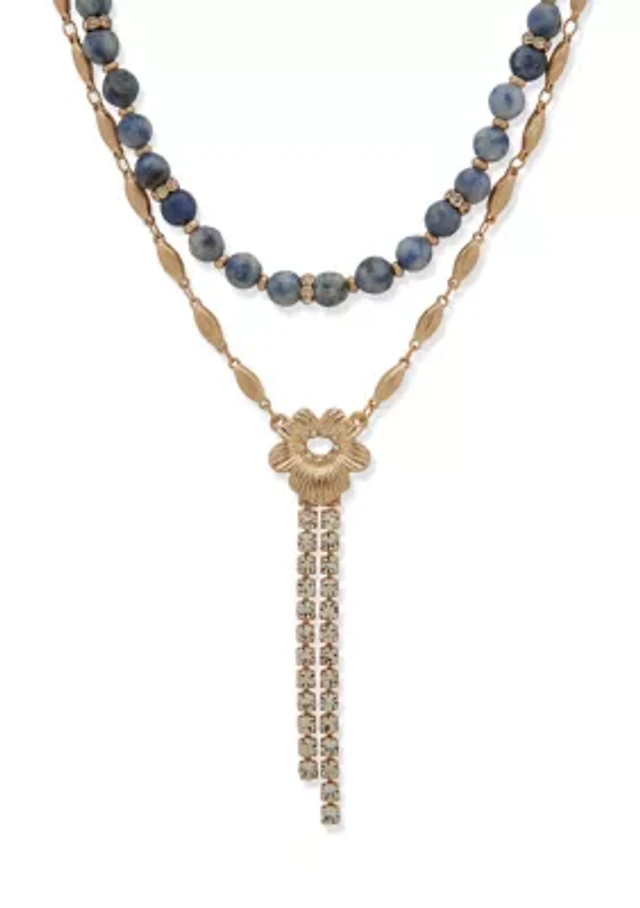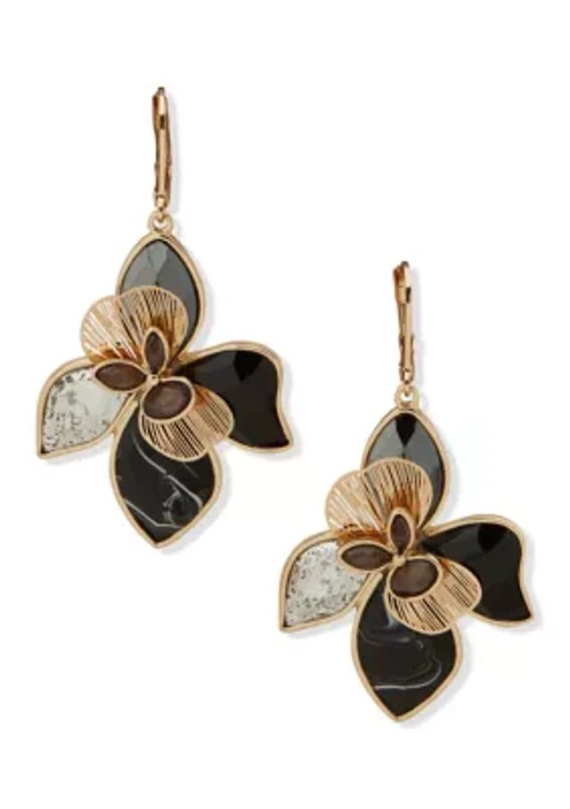 Gold Tone Multi Layered Flower Double Drop Earrings