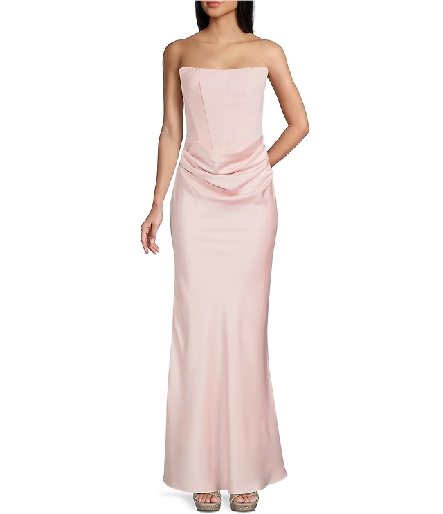 Lulus Majestic Strapless Cut-out Satin Plisse Long Dress