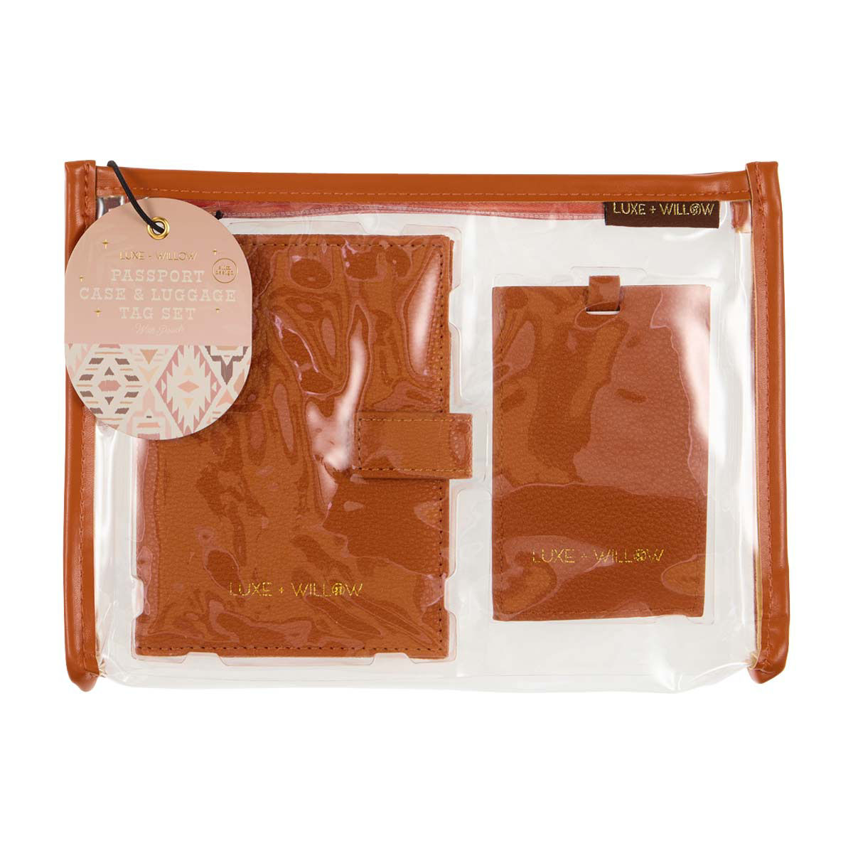 Luxe & Willow Passport Case and Luggage Tag Set, Sunset Pink