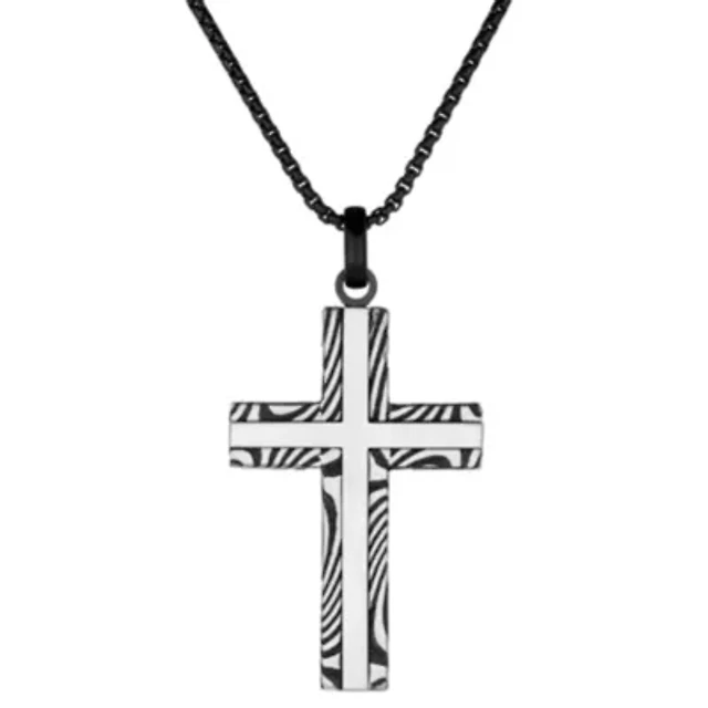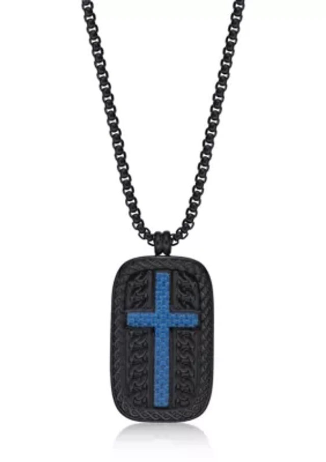 Stainless Steel Cross Pendant with Black Ip and 24" Round Box Chain