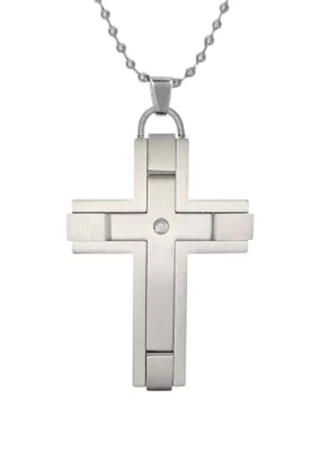 Mens Stainless Steel Cross Pendant with .02 cttw Diamond Accent