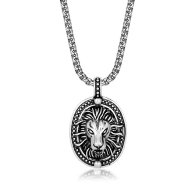 Antiqued Finish Stainless Steel Lion Pendant with Picasso Jasper