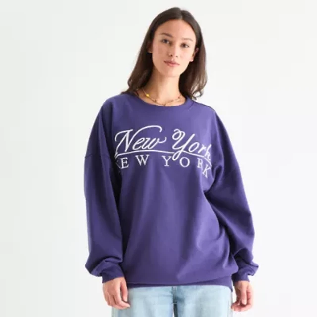 New York Womens Juniors Crew Neck Long Sleeve Embroidered Sweatshirt
