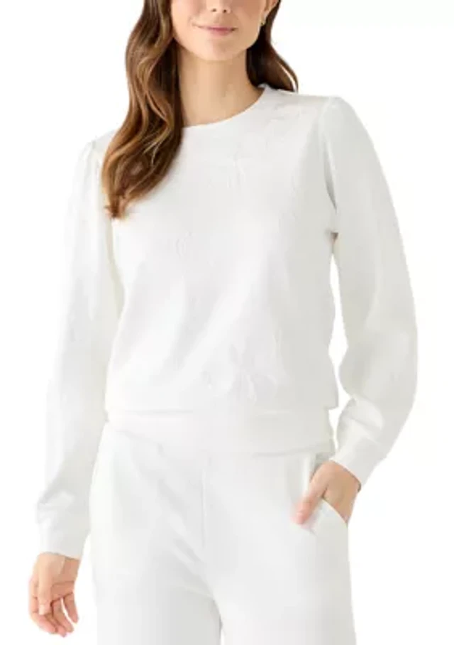 Plus Long Sleeve Floral Crew Sweater