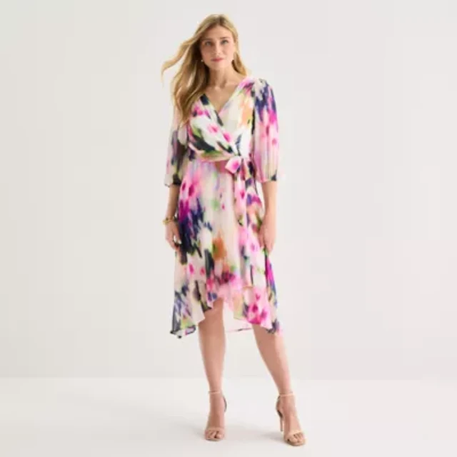 Marc New York Womens 3/4 Sleeve Abstract Midi Fit + Flare Dress