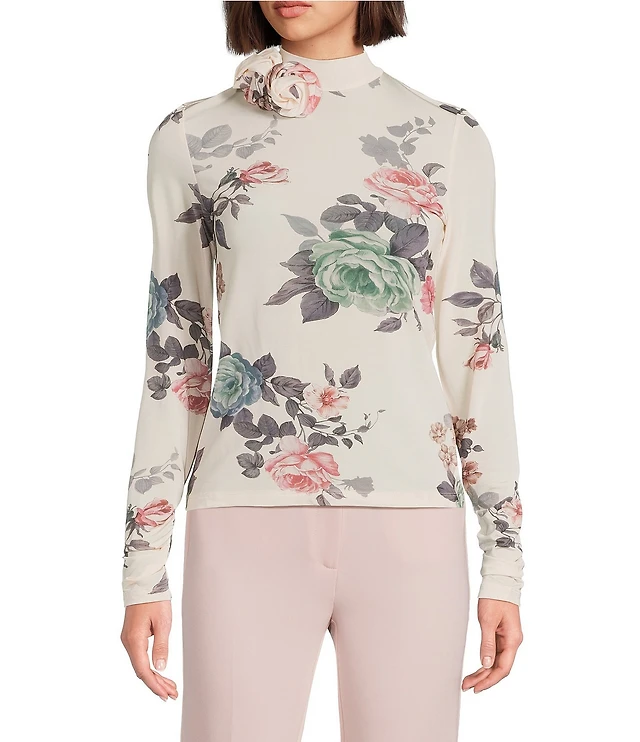 Marella Milcippo Floral Print Turtleneck Long Sleeve Top