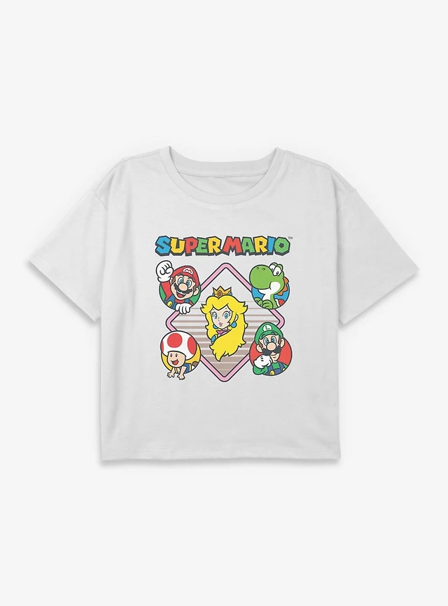 Nintendo Super Mario Diamond Characters Youth Girls Boxy Crop T-Shirt
