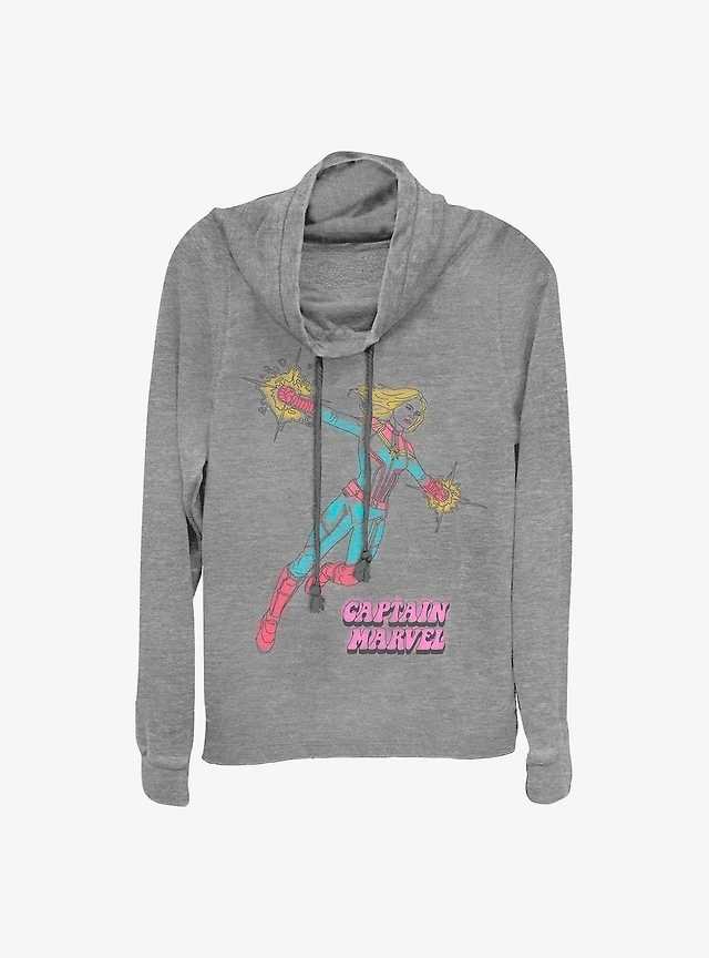 Marvel Captain Comic Art Cowl Neck Long-Sleeve Womens Top