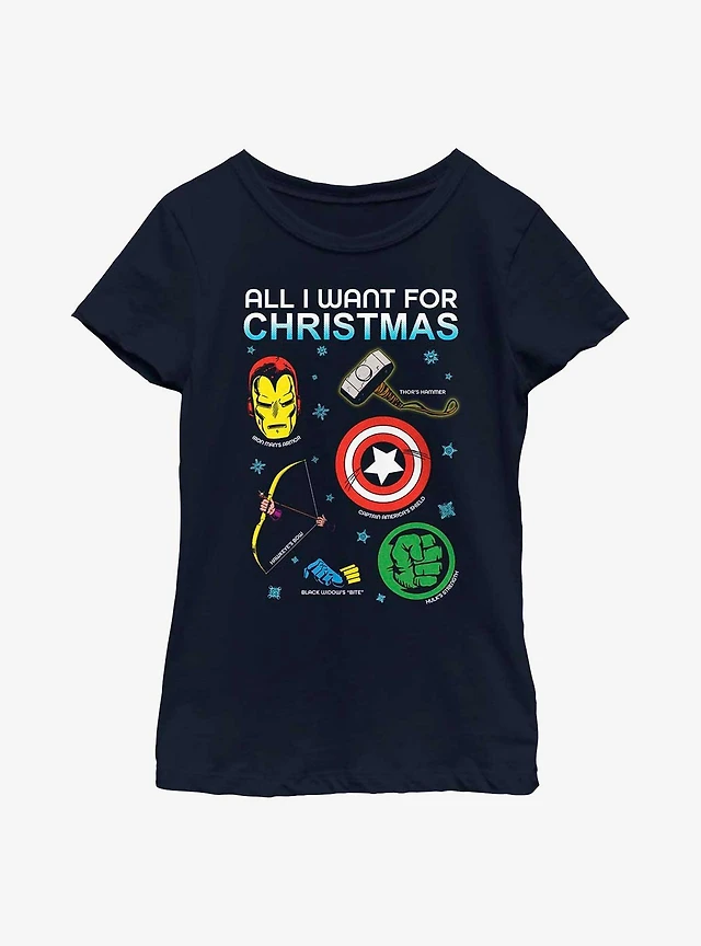 Marvel Avengers Christmas List Youth Girls T-Shirt