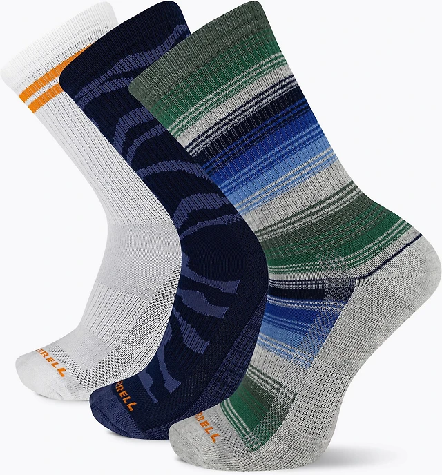 Merrell Adults' Recycled Everyday Stripe Hiking Crew Socks 3 Pack