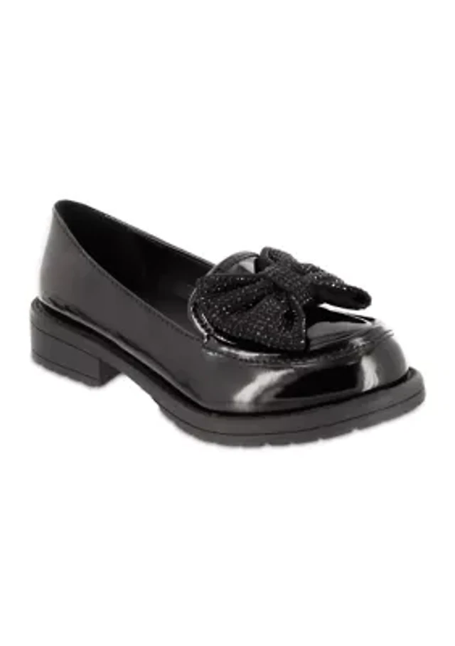 Girls Studded Bow Patent Loafer Flats