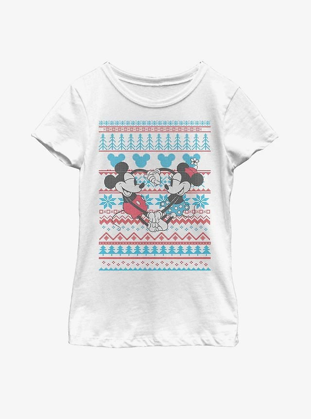 Disney Mickey Mouse & Minnie Christmas Pattern Youth Girls T-Shirt