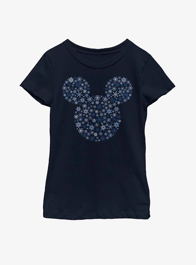 Disney Mickey Mouse Ears Snowflakes Youth Girls T-Shirt