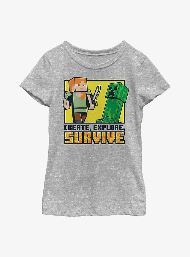 Minecraft Create Explore Survive Iso Youth Girls T-Shirt