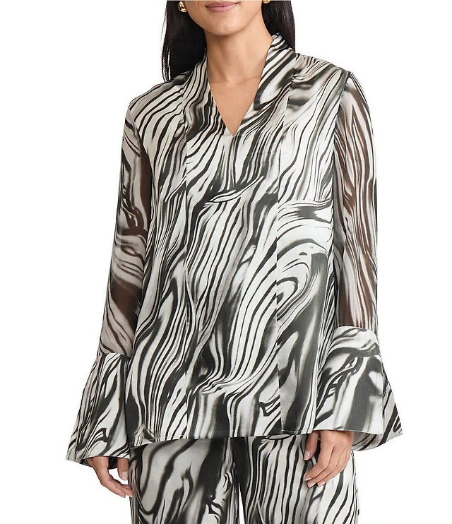 MISOOK Abstract Animal Print Coordinating Soft Knit Crew Neck Long Sleeve Button Top