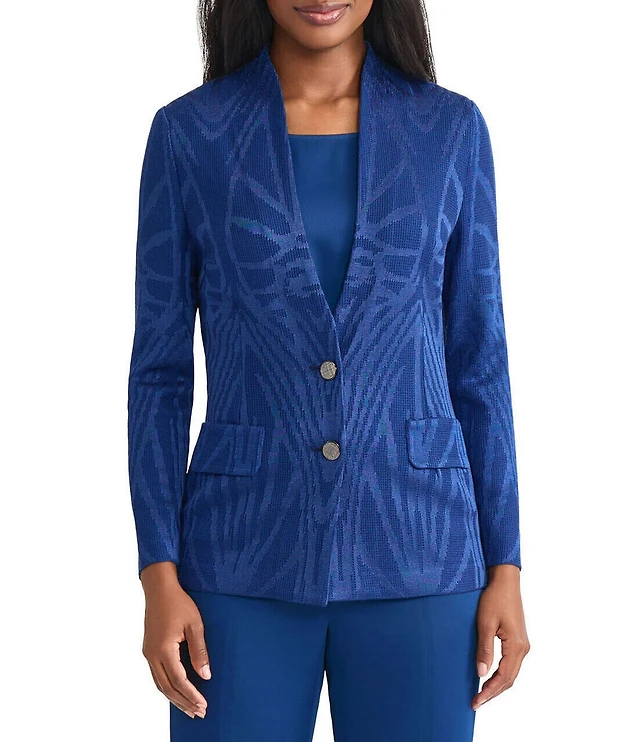 MISOOK Mixed Media Ponte Modified Mandarin Collar Long Sleeve Blazer