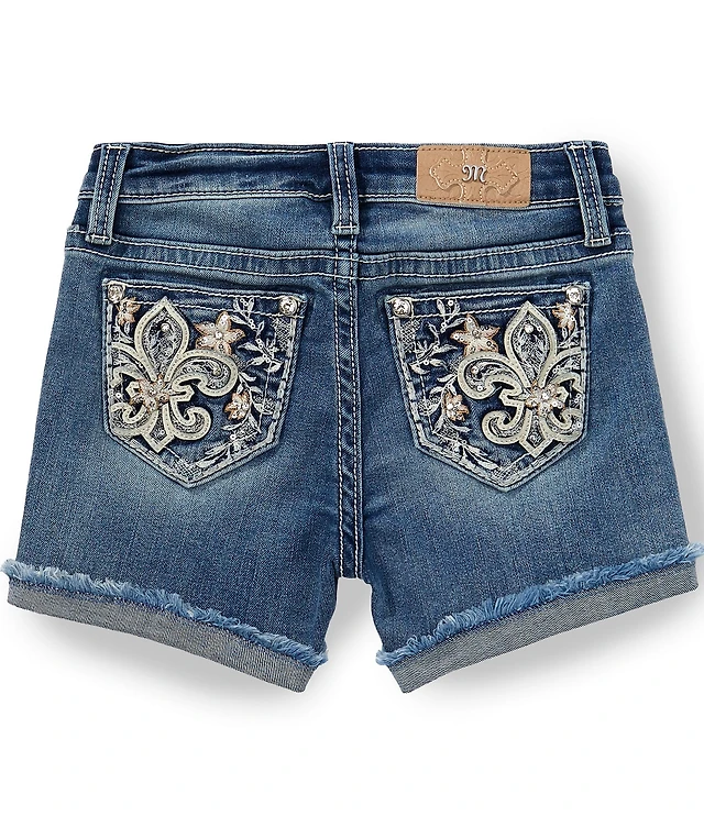 Miss Me Big Girls Embellished Wing Pocket Frayed Hem Denim Shorts