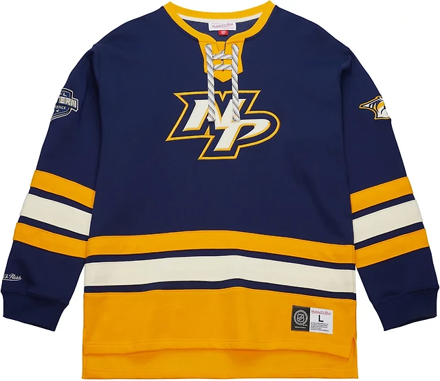Mitchell & Ness Men's Nashville Predators Heritage Lace Up Long Sleeve Crew Sweatshirt