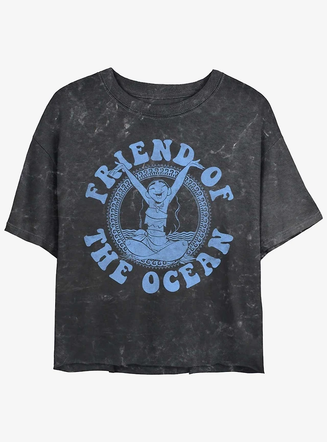 Disney Moana Ocean Friend Womens Mineral Wash Crop T-Shirt