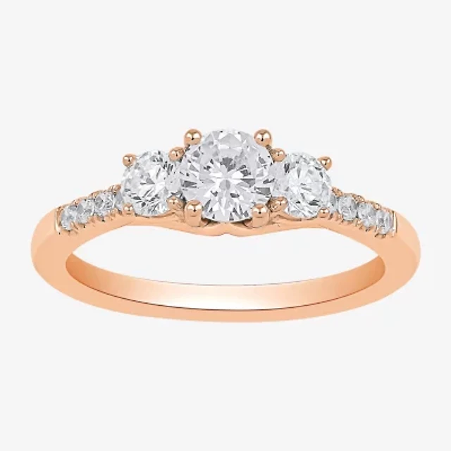 (G / Si2) Womens 1 1/3 CT. T.W. Lab Grown White Diamond 10K Gold Round Side Stone Engagement Ring