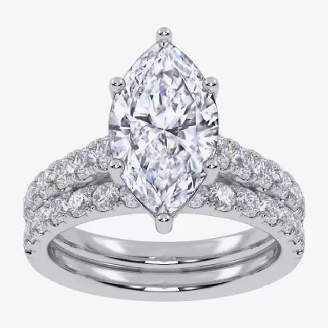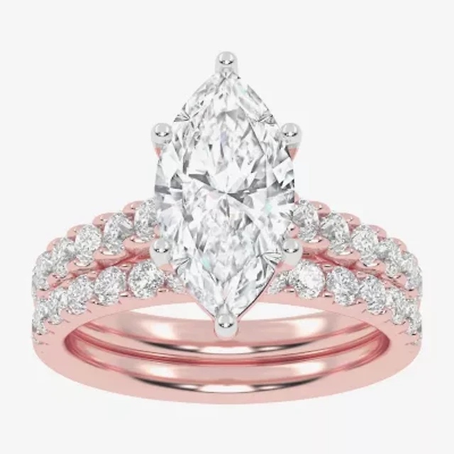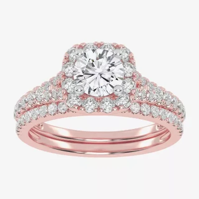 Signature By Modern Bride (G / Si1-Si2) Womens 2 CT. T.W. Lab Grown White Diamond 10K Gold Side Stone Halo Bridal Set