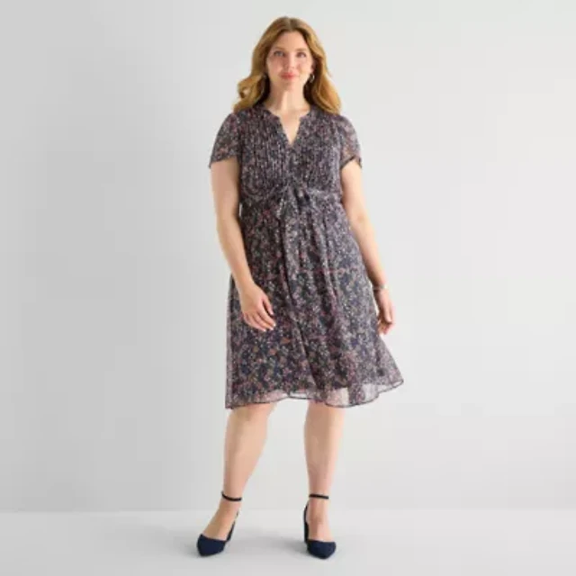 MSK Womens Plus Short Sleeve Floral Shirt Dress