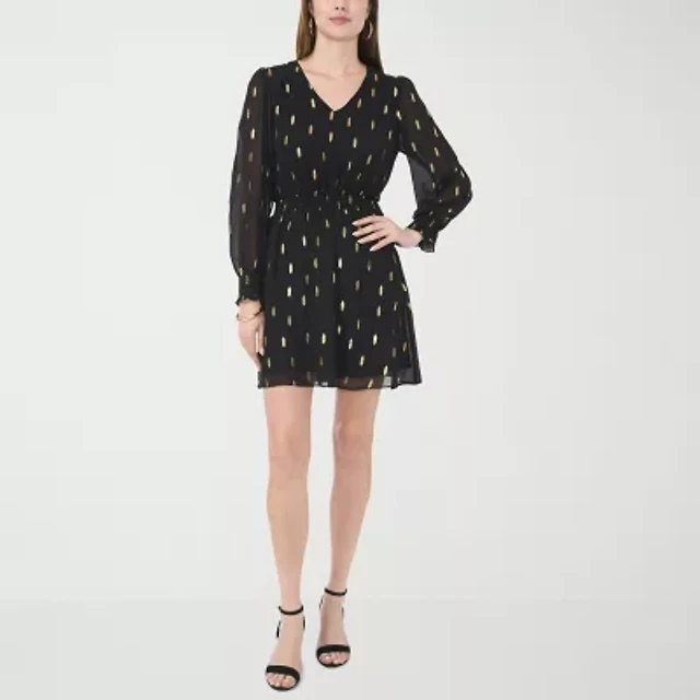 MSK Womens Long Sleeve Dots Fit + Flare Dress