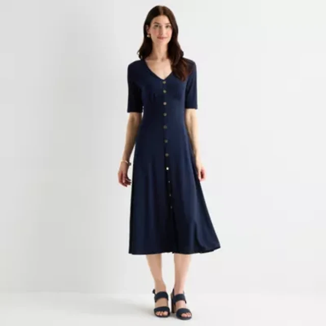 MSK Womens Short Sleeve Midi Fit + Flare Dress