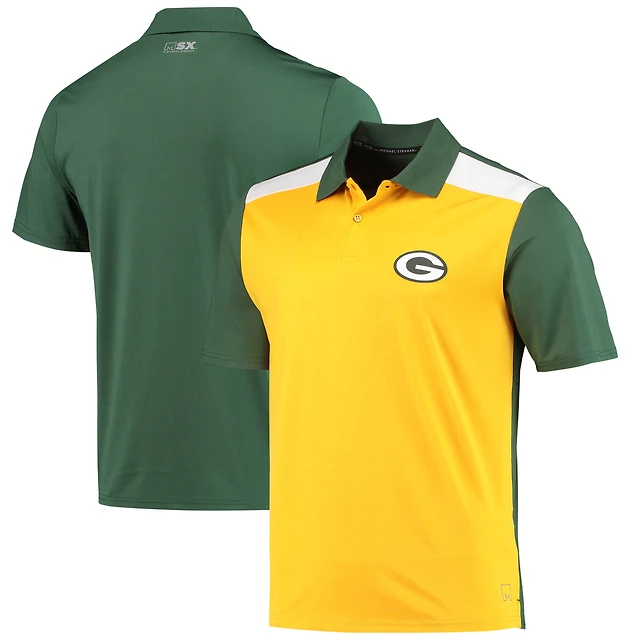 Men's MSX by Michael Strahan Gold/Green Green Bay Packers Challenge Color Block Performance Polo