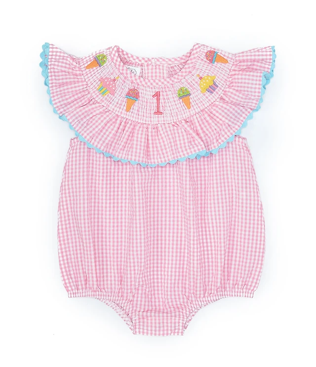 Mud Pie Baby Boys Sleeveless 1st Birthday Checked Shortall Jon Jon
