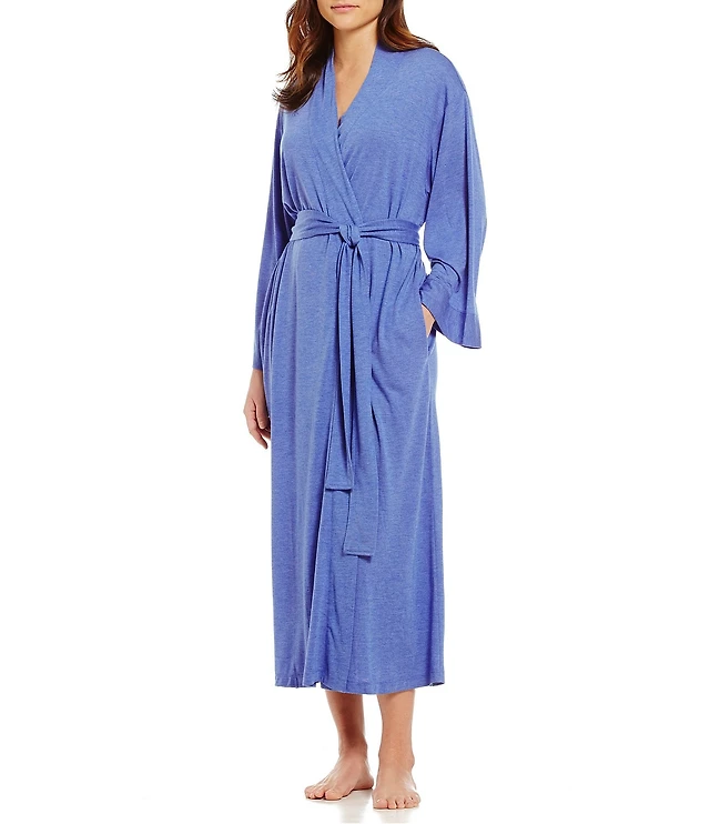 Natori Geisha Printed Cozy Knit Long Sleeve Tie Waist Mid Wrap Robe