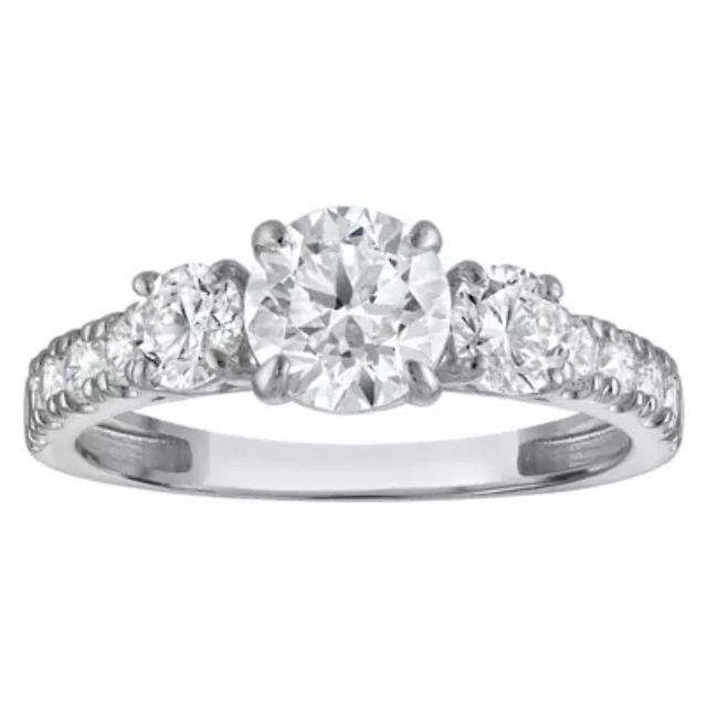 Lab Created 14k Gold cttw Lab-Grown Diamond 3-Stone Round Engagement Ring