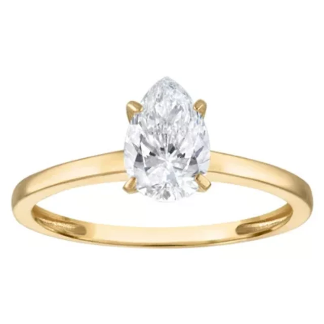 Lab Created 14k Yellow Gold 1 cttw Lab-Grown Diamond Pear Solitaire Ring