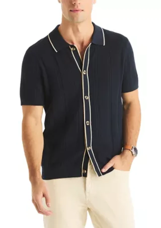 Men's Short Sleeve Button Front Polo Sweater