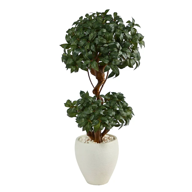4ft. Double Boxwood Topiary Tree in White Planter with Stand
