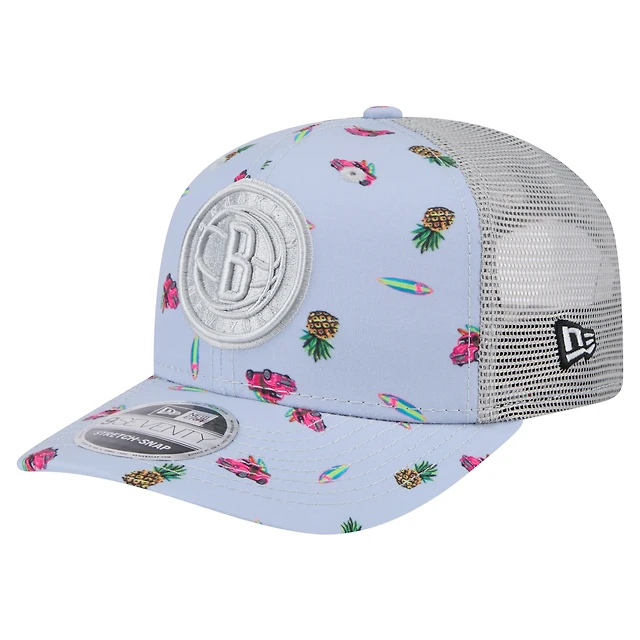 Men's New Era Light Blue/Gray Brooklyn Nets Adventure Aloha Pattern 9SEVENTY Stretch-Snap Hat