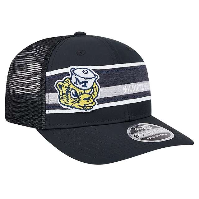 New Era /Navy Michigan Wolverines Striped 9SEVENTY Trucker Stretch-Snap Adjustable Hat