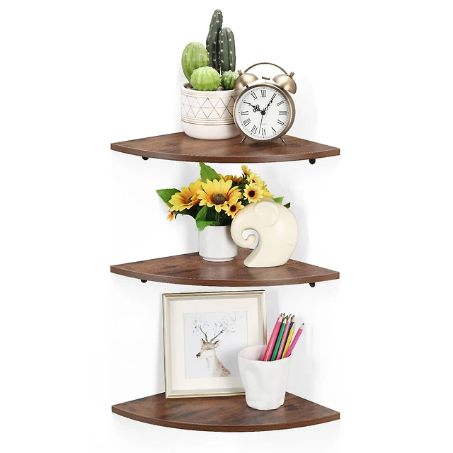 Brown Wood Wall Mounted Corner Floating Shelf Set