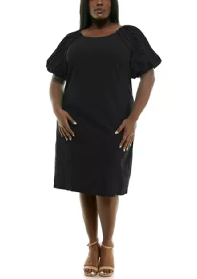 Pleated Puff Sleeve Dress