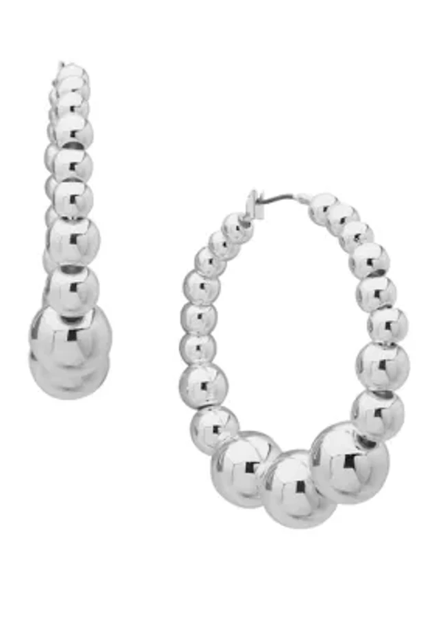 Polished Silver Tone Wide Small Click Top Hoop Earrings