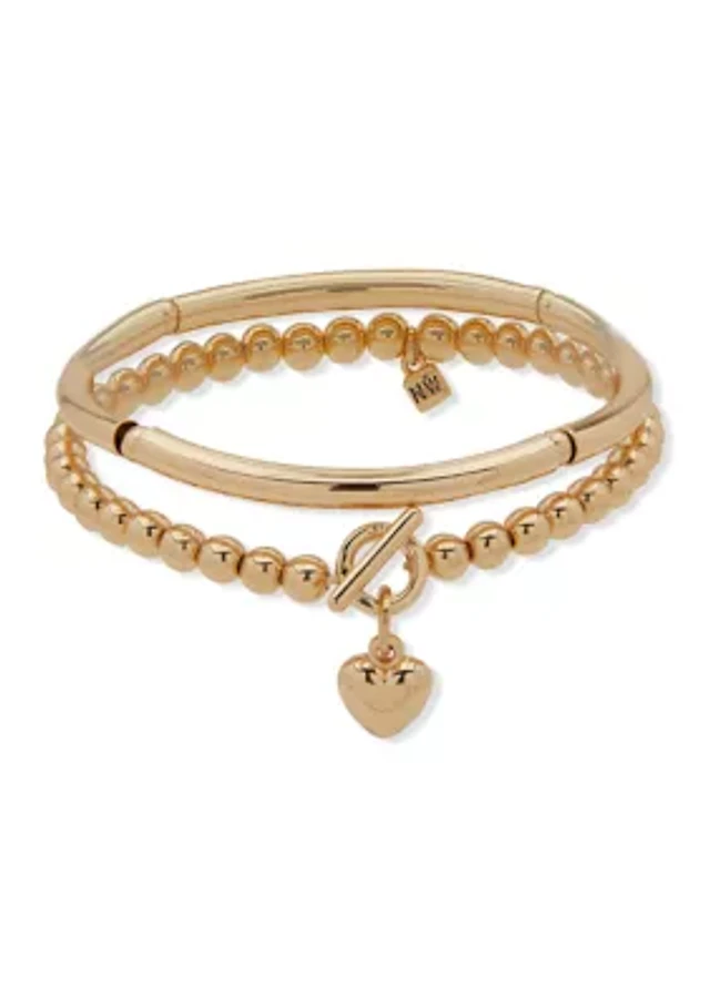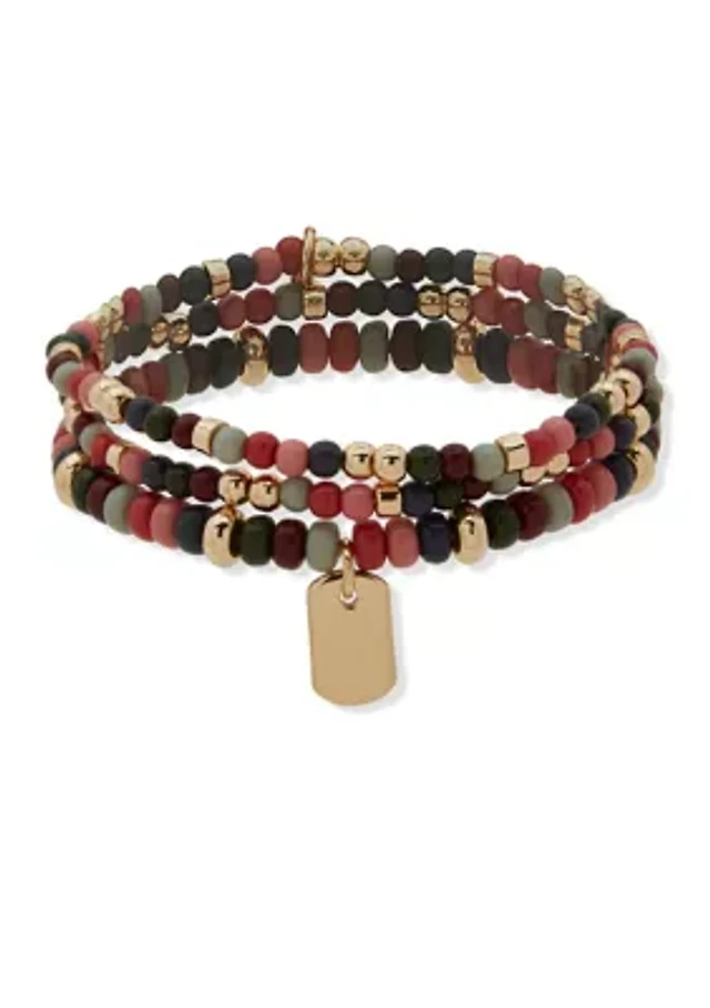 Tri Tone Multi Row Stretch Boxed Bracelet